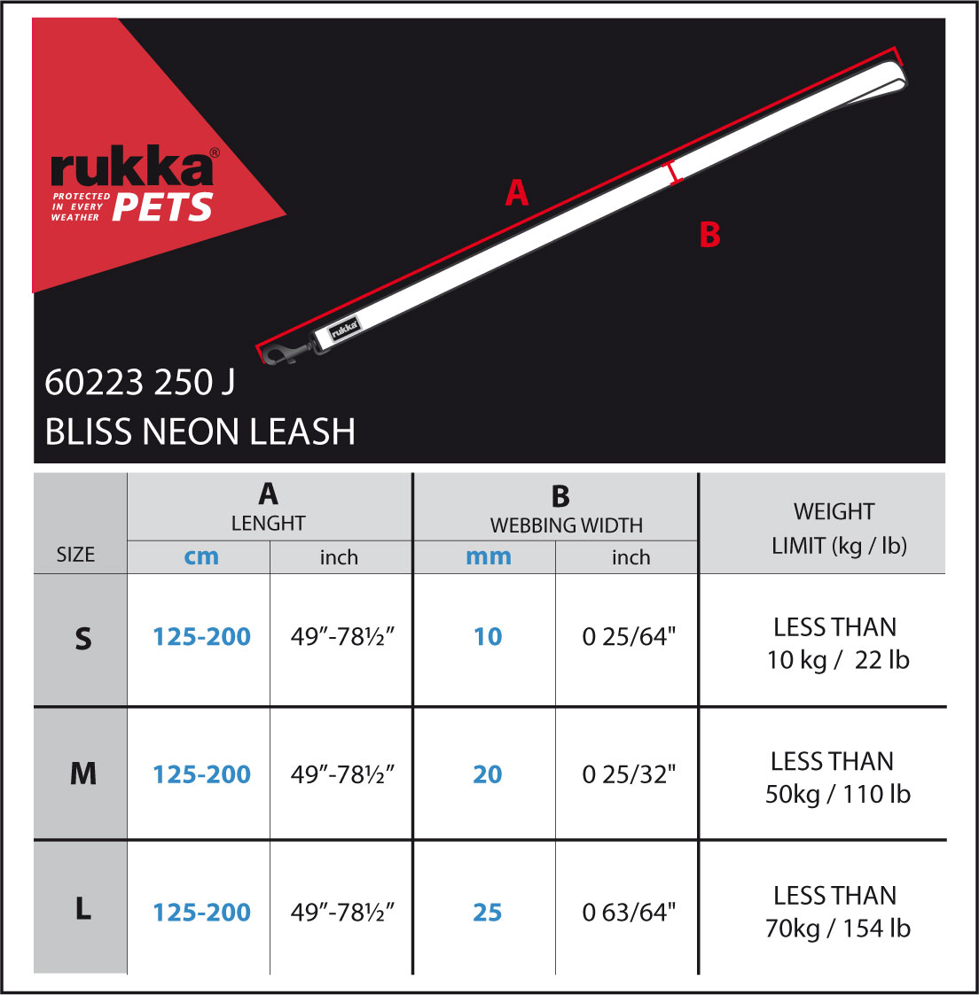 Observera att neonfärger kan blekna med tiden, och om de utsätts för fukt upprepade gånger kan färgerna börja blöda. Till en vit eller ljus hund rekommenderar vi att du väljer ett koppel från vanliga bliss-serien.