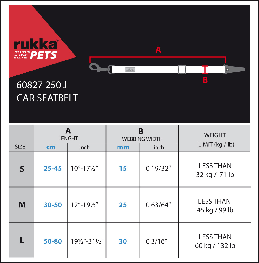 Slitstarkt bilbälte, justerbar längd. Fäst ena sidan i hundens selen och den andra i bilens ISOFIX-fästen.