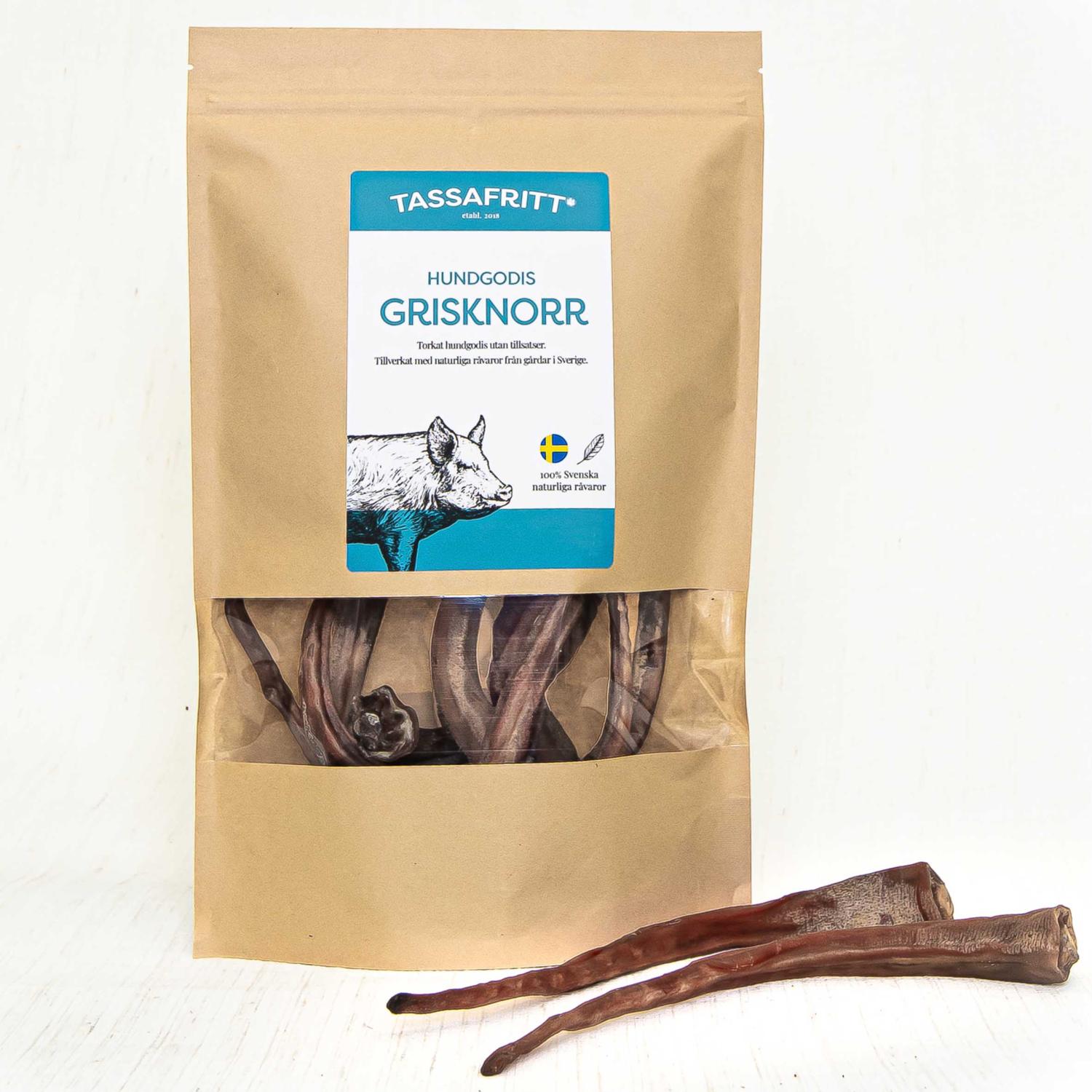 Grisknorr är ett smakrikt och ganska hårt tugg som passar både små och stora hundar. Varsamt torkad för att bevara näring och smak. Bildar inga vassa kanter, doftar milt och kladdar minimalt.